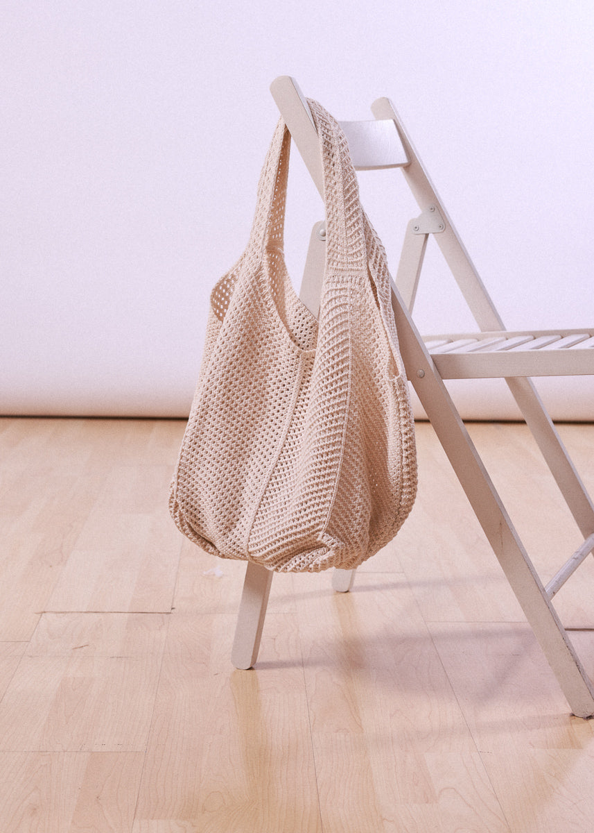 Bolso shopper de estilo crochet color beige perfecto para para verano.