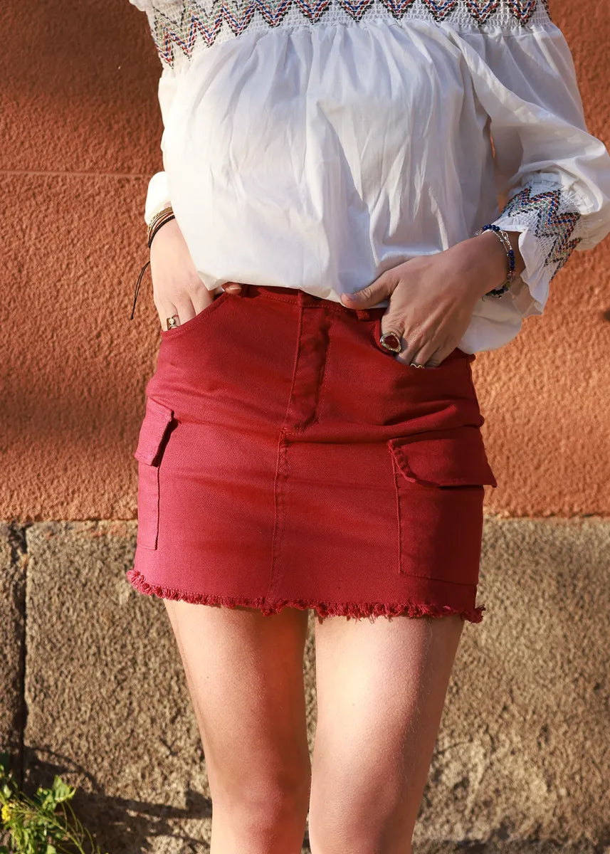 Falda Mini Cargo Rojo Oscuro