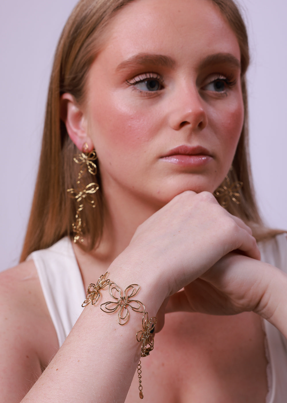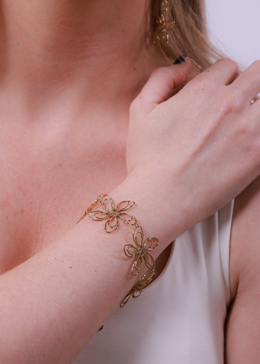 Pulsera dorada con figuras de flores de acero inoxidable quirúrgico.