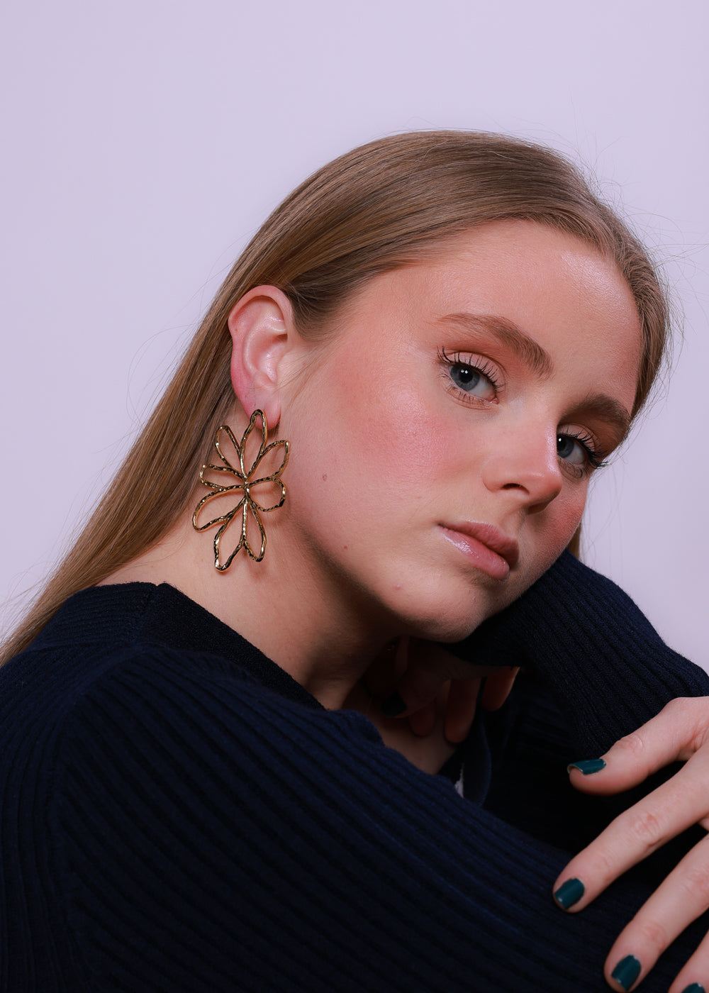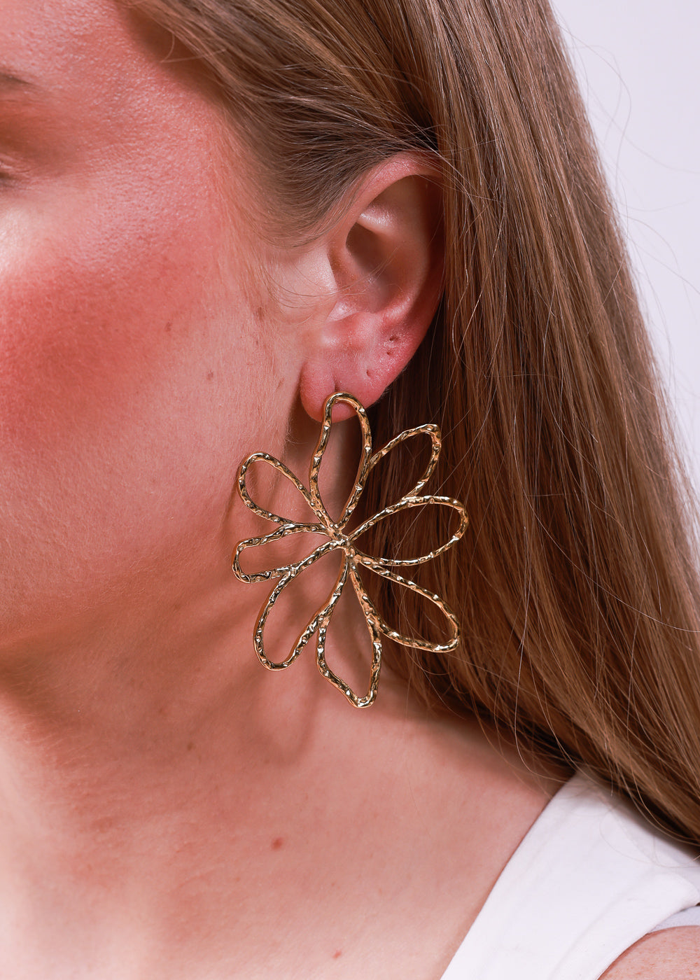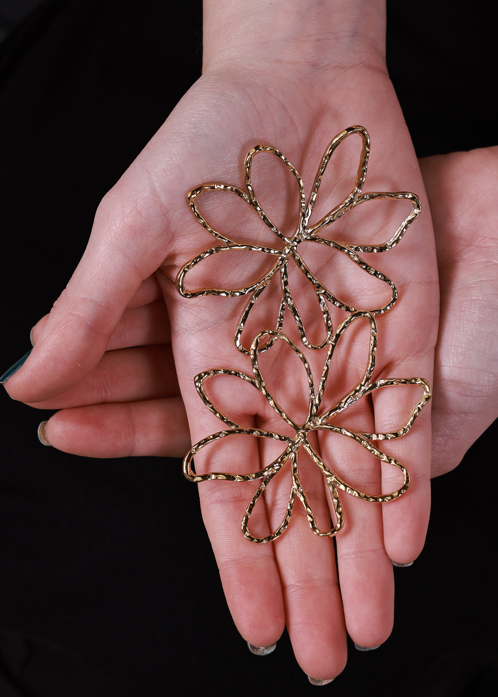 Gold-plated maxi flower-shaped earrings made of surgical stainless steel.