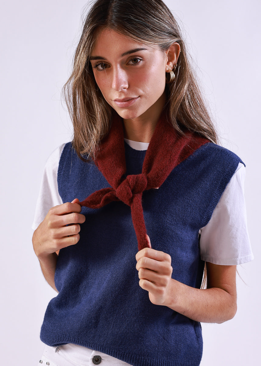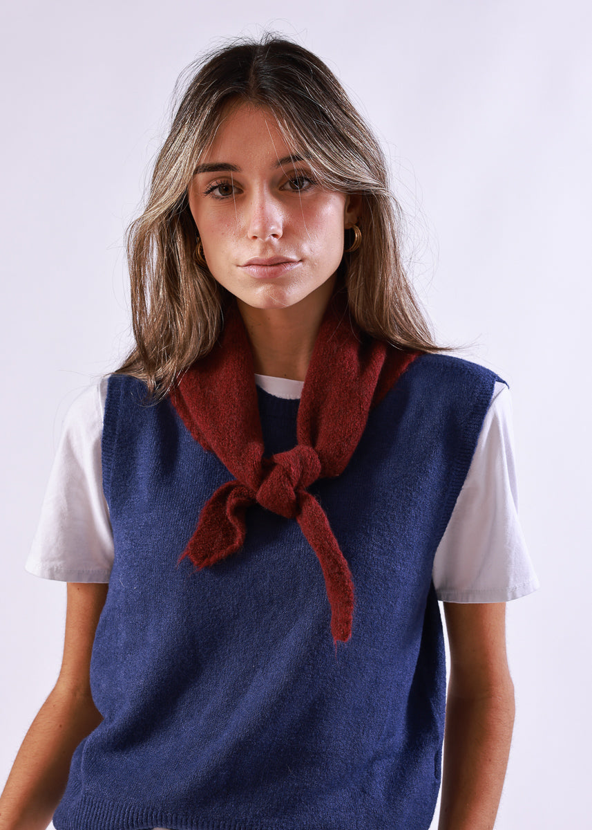 Toquilla / Pañuelo de lana triangular en color rojizo.
