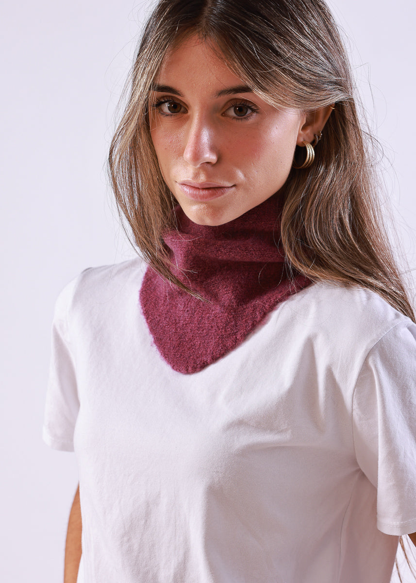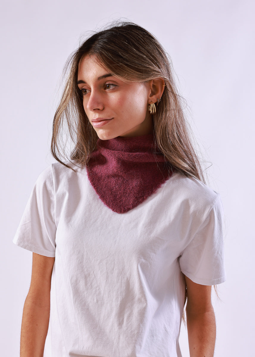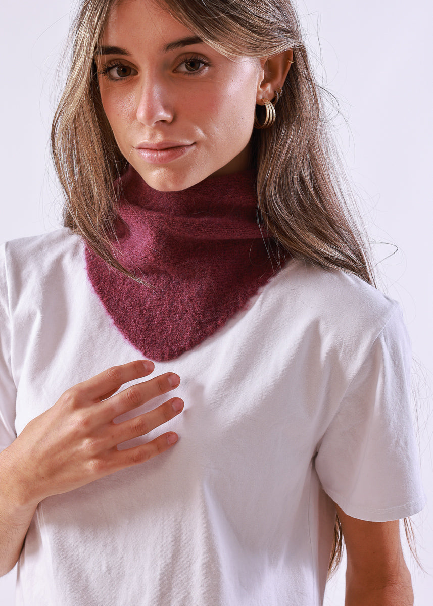 Toquilla / Pañuelo de lana triangular en color rosado.
